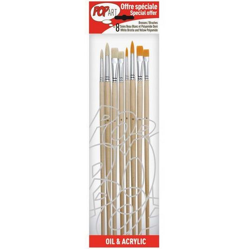 Set de 8 pinceaux brosse polyamide et soie