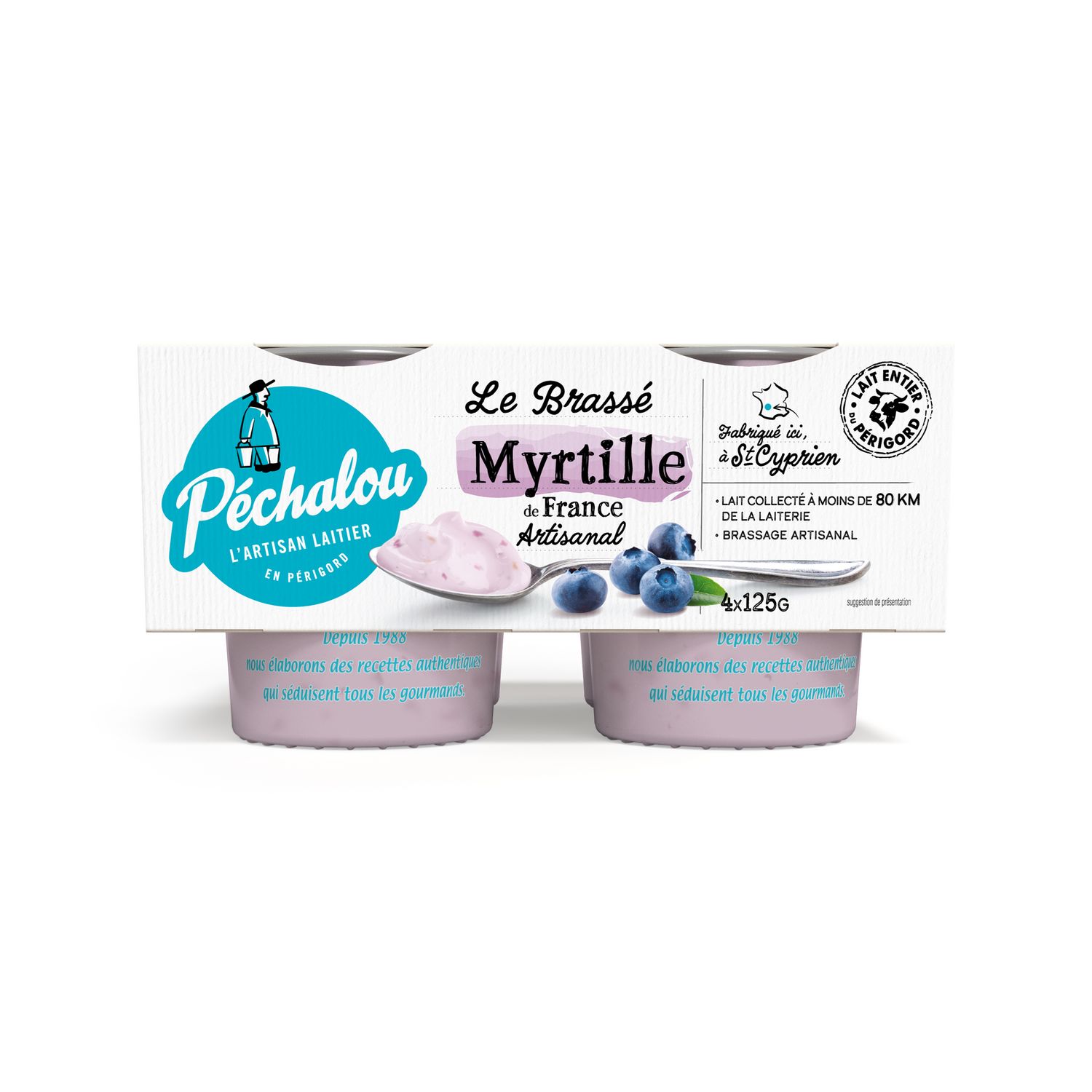 Yaourt 81% (LAIT entier 74%, LAIT écrémé en poudre, sucre, ferments lactiques); préparation de fruit 19% (myrtille France 8%, sucre, amidon natif, arômes naturels, jus de citron concentré)
