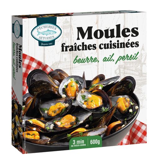 Moules cuisinées au beurre, ail, persil à réchauffer.