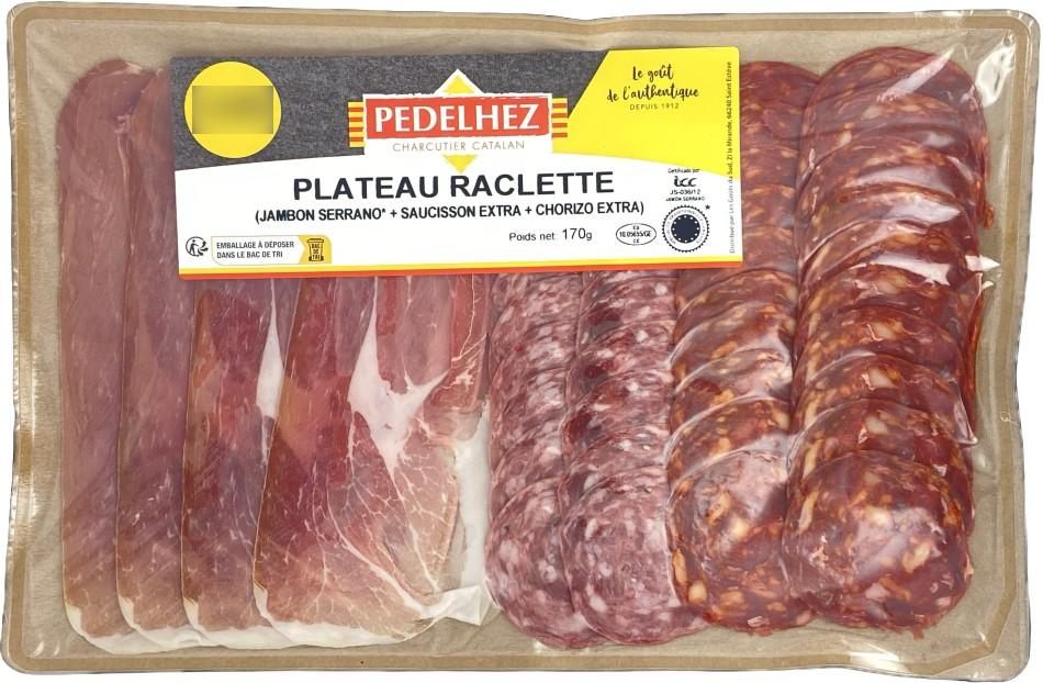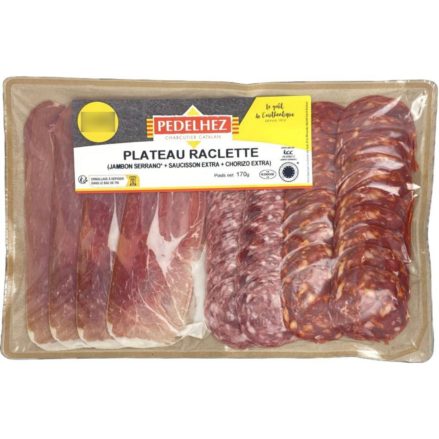 Plateau raclette jambon serrano, saucisson extra et chorizo extra