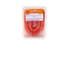 viande de porc (88%), eau, sel, correcteur d'acidité E262, E331,E326, épices, sirop de glucose, antioxydant E301 et E300, colorant E162, aromes et boyau naturel.