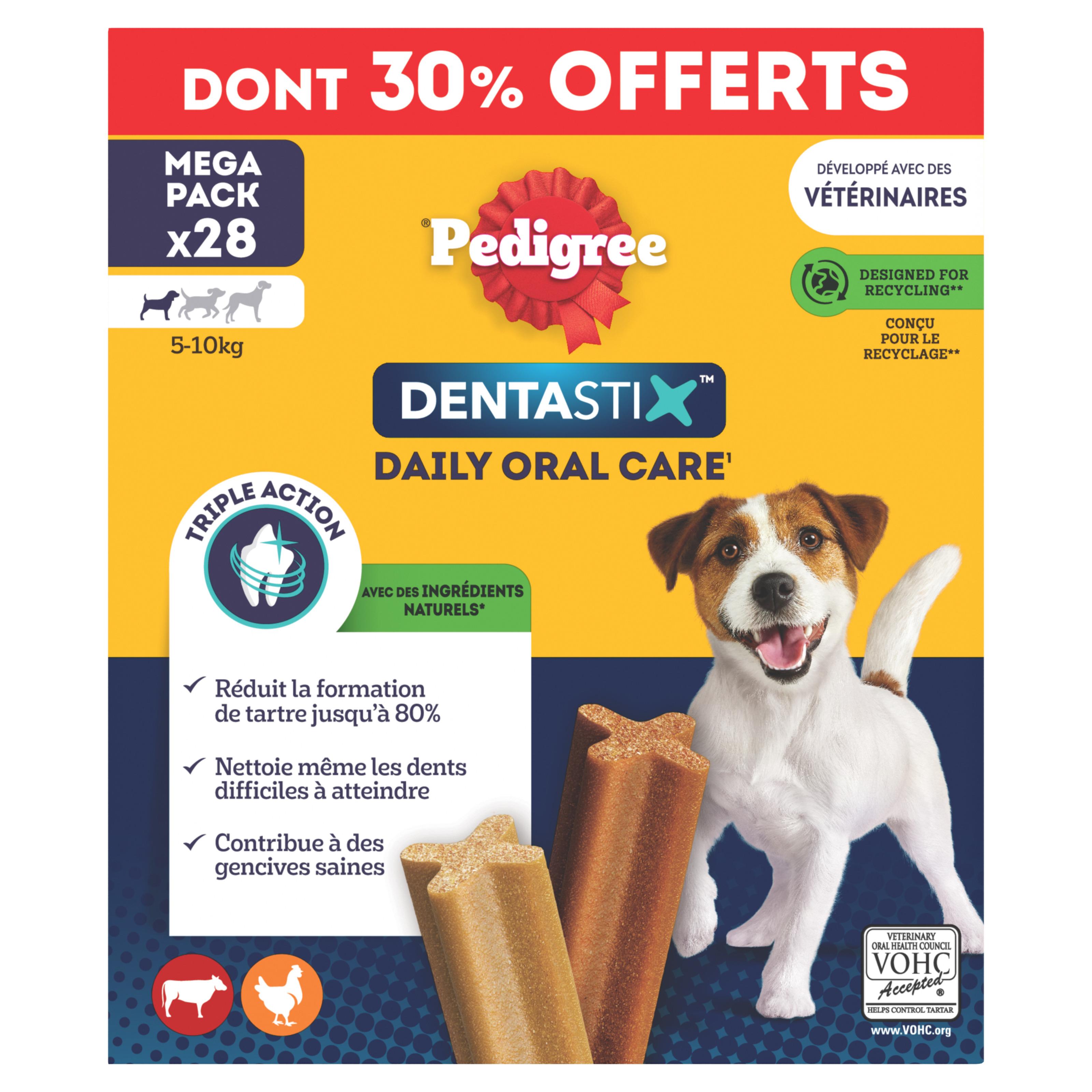 PEDIGREE Dentastix Bâtonnets hygiène bucco-dentaire pour petit chien 28x440g dont 30% offerts
