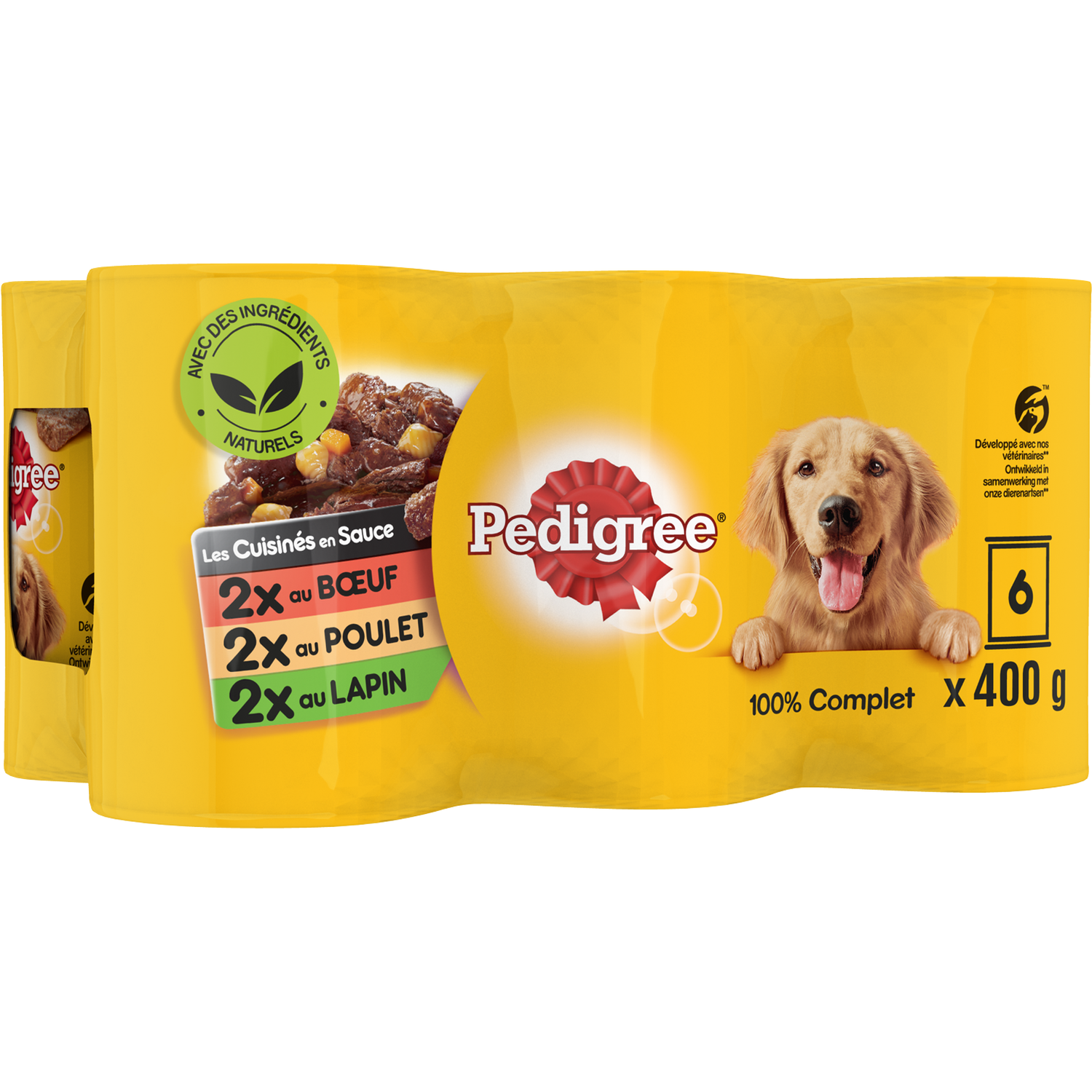 PEDIGREE Les Cuisinés Boîtes en sauce 3 variétés pour chien 6x400g