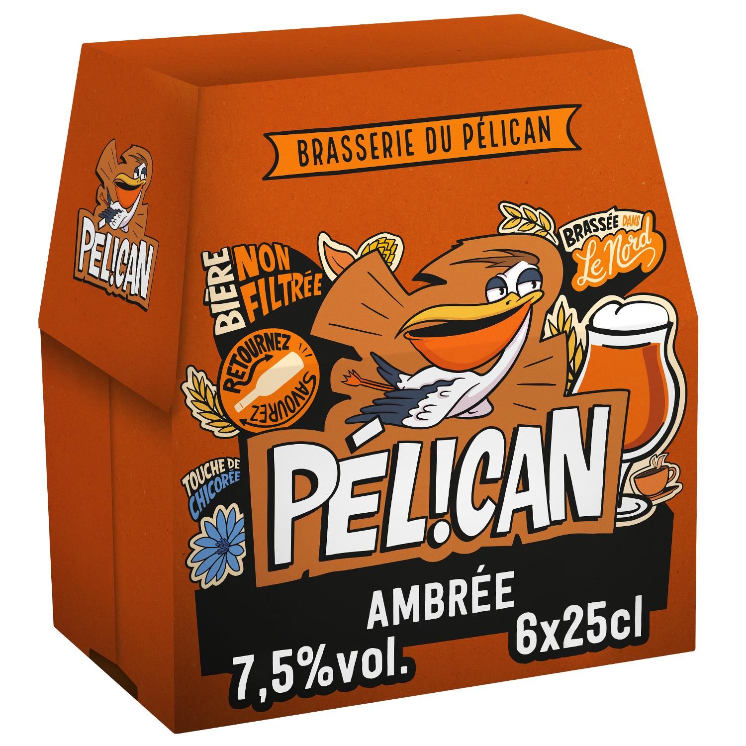 Pélican Ambrée est une bière ambrée du Nord de fermentation haute à 7,5%, non-filtrée pour encore plus de caractère et de goût : de quoi satisfaire les becs fins !