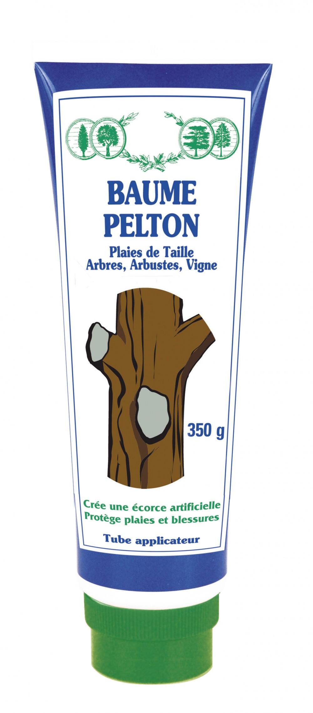 Baume Pelton 350g. véritable soin prêt à l'emploi grâce à son tube avec embout applicateur, le baume pelton protège les plaies de vos arbres. AMM : produit barrière,Cible (animaux, parasites, maladies...): PlaiesDestination: ArbresEpoque d'emploi: Toute l'annéeMode d'action: Préventif (substance qui