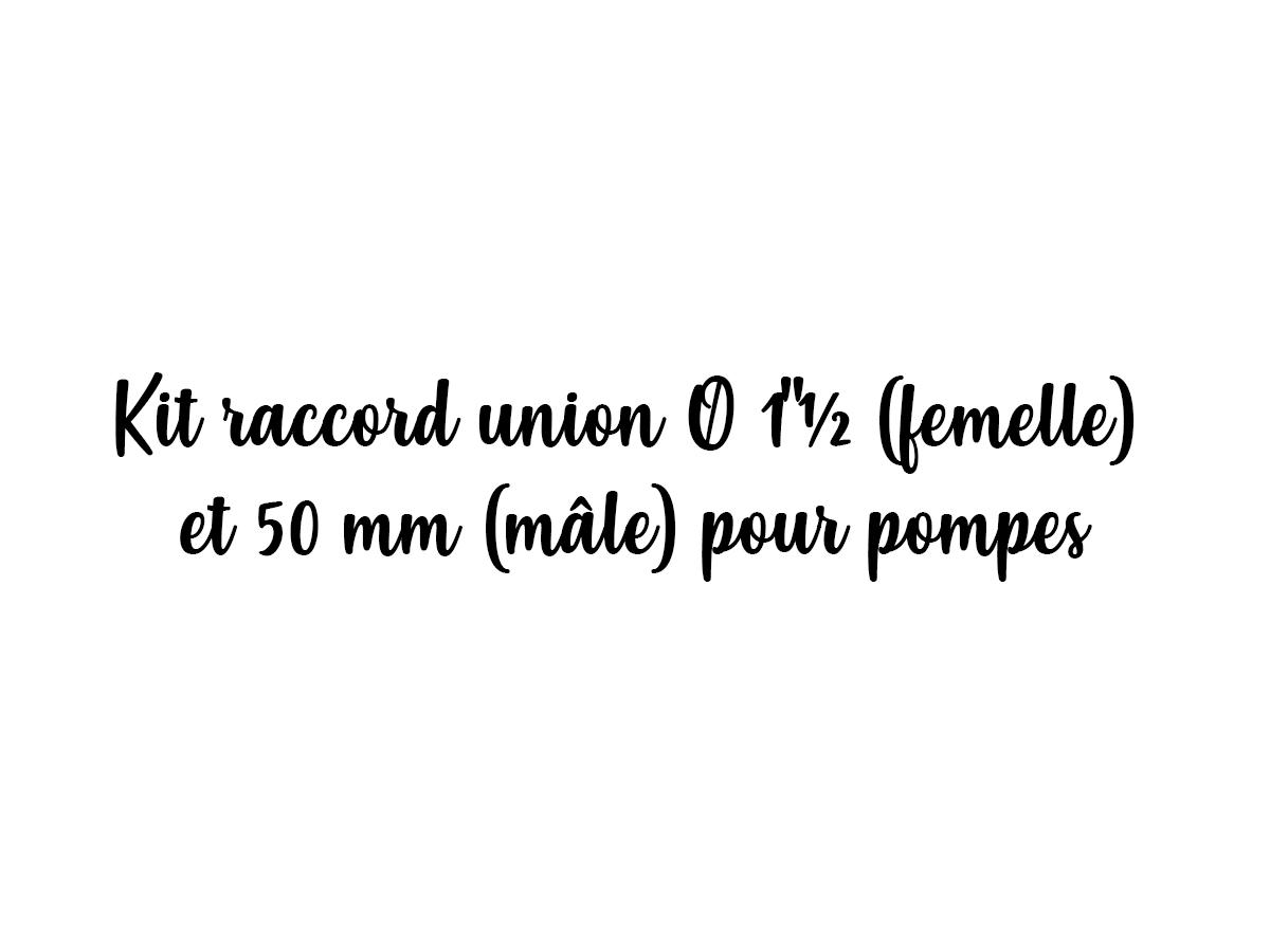 Ce kit de raccord union de la marque PENTAIR est conçu pour les pompes et est composé d'un côté femelle de diamètre 1 ½ et d'un côté mâle de 50 mm.