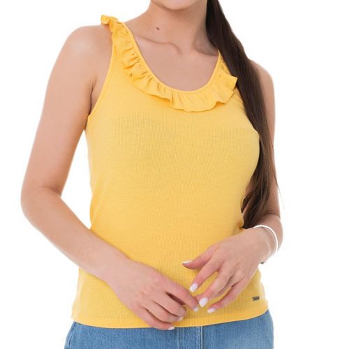 Craquez pour le débardeur de la marque PEPE JEANS ! Coloris : Jaune Col rond Sans manches Volant sur la poitrine Coupe slim Composition : 8% Polyester, 28% Viscose, 4% Élasthanne
