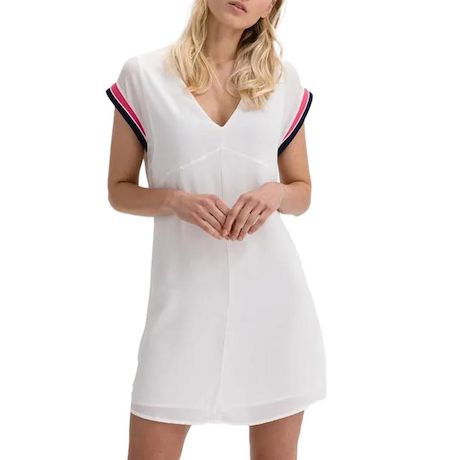 Optez pour cette robe Pepe JeansColoris : BlancCol V Manches courtesComposition : 97% polyester, 3% élasthanne