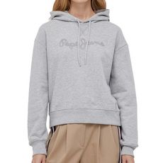 Sweat femme de la marque Pepe JeansManches longuesCapucheColoris : Gris Inscription Pepe Jeans brodéComposition : 65% coton , 35% polyester