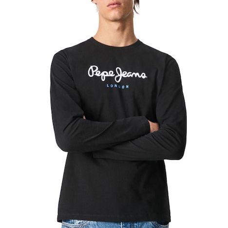 Craquez pour le t-shirt de la marque PEPE JEANS !Coloris : Noir Col rond Manches longues Imprimé sur la poitrine Composition : 100% Coton