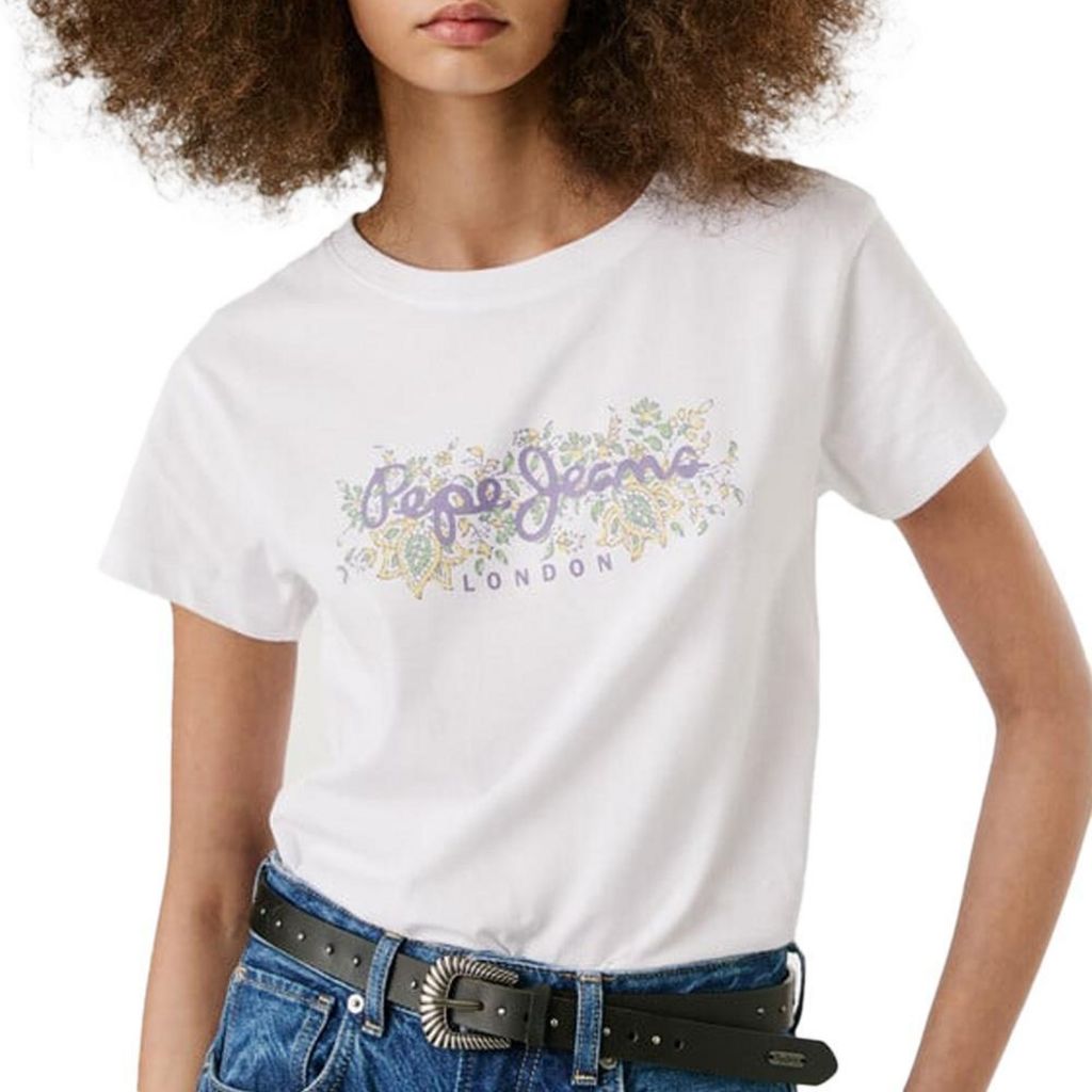 T-shirt femme de la marque Pepe Jeans !Manches courtesCol rondImprimé sur l'avantColoris : BlancComposition : 100% Cotton