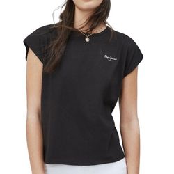 T-shirt femme de la marque Pepe Jeans Manches courtes Col rond Épaules tombantes Coloris : Noir Logo sur la poitrine Composition : 100% coton