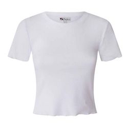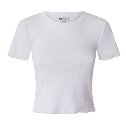 T-shirt femme de la marque Pepe JeansManches courtesCol rondCoupe courteColoris : Blanc CôteléComposition : 97% coton , 3% élasthanne