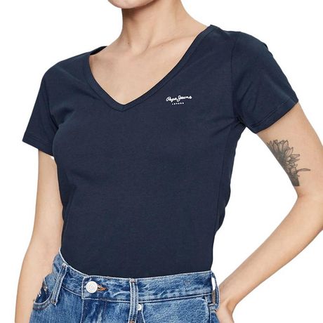 Craquez pour le t-shirt femme de la marque Pepe JeansManches courtesCol VColoris : MarineLogo Pepe JeansComposition : 100% coton bio
