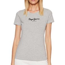Craquez pour le t-shirt femme de la marque Pepe Jeans modèle New Virginia ! Col rond Manches courtes Coloris : Gris Logo sur l'avant Composition : 100% coton