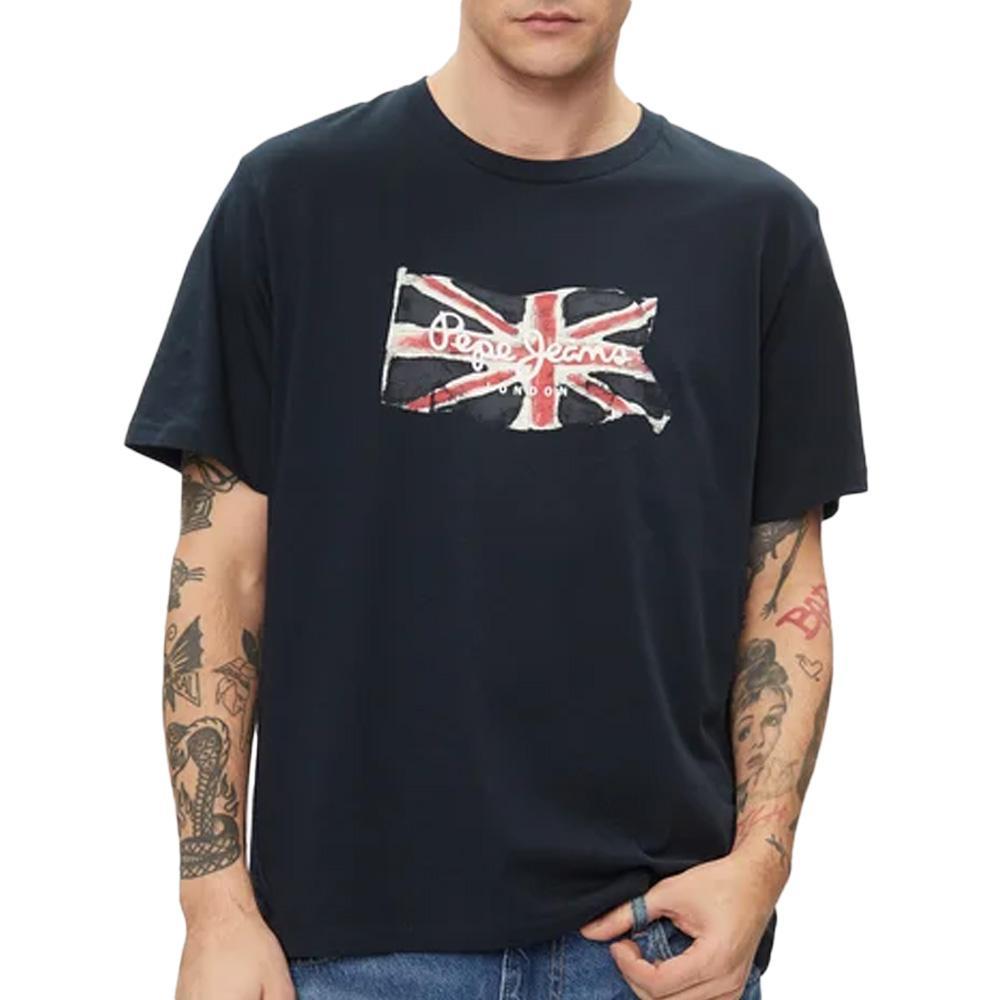Découvrez ce t-shirt de la marque Pepe Jeans !Coloris : Marine Coupe altiqueCol rondManches courtesImprimé sur la poitrineComposition : 100% coton