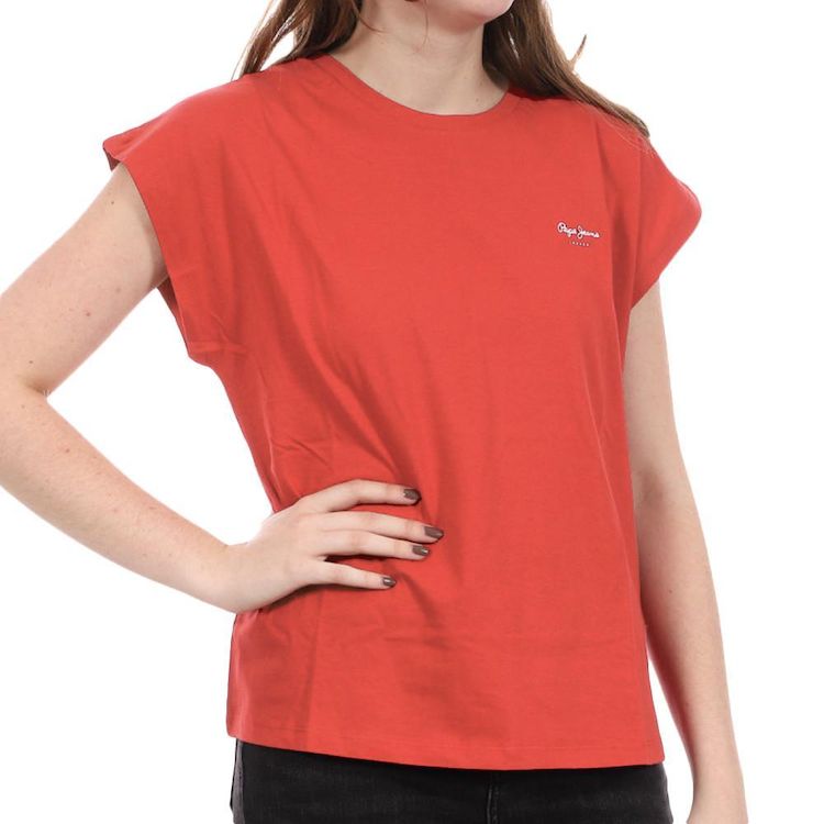 T-shirt pour femme de la célèbre marque Pepe Jeans ! Couleur : rouge Coupe regular Col rond côtelé ras du cou Manches courtes Imprimé Pepe Jeans sur la poitrine Composition : 100% coton