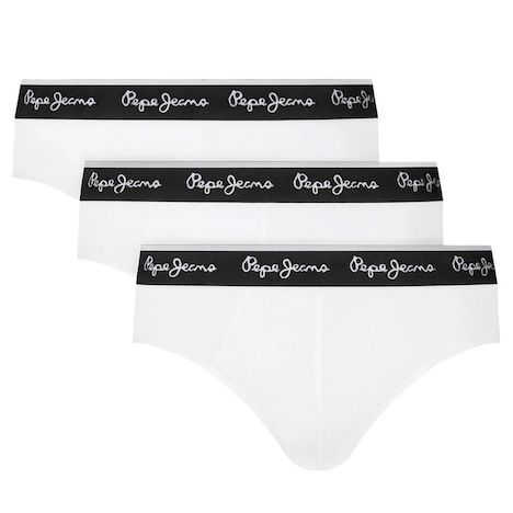 Optez pour ce lot de trois slips Pepe Jeans à prix bas !Coloris : Blanc/NoirTaille élastiqueLot de troisComposition : 95% Coton, 5% Élasthanne
