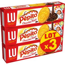 Ingrédients : Farine de BLÉ 51 %, chocolat noir 27 % [sucre, pâte de cacao, beurre de cacao, huiles végétales (palme et karité en proportions variables), lactose (de LAIT), BEURRE pâtissier, émulsifiants (lécithine de soja, E471)], sucre, huiles végétales (palme et noix de coco), lactosérum en poudre (de LAIT), noix de coco, sirop de glucose-fructose, poudre à lever (carbonate acide d'ammonium, carbonate acide de sodium), sel, arômes, correcteur d’acidité (orthophosphate monocalcique). PEUT CONTENIR OEUFS, FRUITS À COQUE ET SÉSAME.