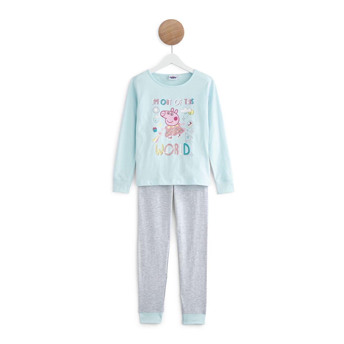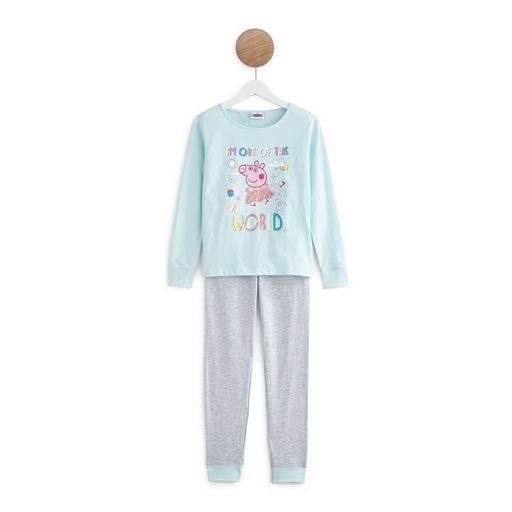 En savoir +Trop cool, ce pyjama imprimé à l'effigie de Peppa Pig avec paillettes ! Il offre de belles et douces nuits à nos filles. Confectionné en jersey de coton, cet ensemble pyjama fille se compose d'un T-shirt manches longues à col rond et d'un pantalon chiné à taille élastiquée resserré dans le bas par bord-côte.