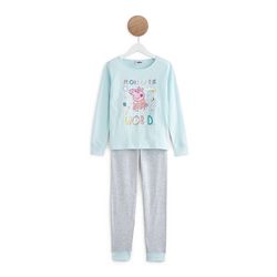 Trop cool, ce pyjama imprimé à l'effigie de Peppa Pig avec paillettes ! Il offre de belles et douces nuits à nos filles. Confectionné en jersey de coton, cet ensemble pyjama fille se compose d'un T-shirt manches longues à col rond et d'un pantalon chiné à taille élastiquée resserré dans le bas par bord-côte.
