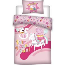 Parure housse de couette enfant en coton Peppa Pig ! Parure housse de couette en coton, moelleuse et confortable. Le coton s'assouplit au lavage.
