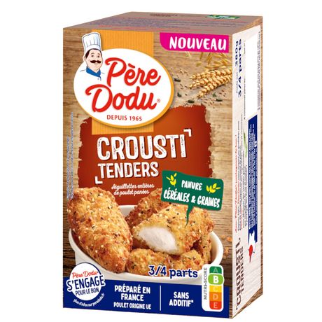 Découvrez la nouvelle recette d''aiguillettes entières de poulet Père Dodu : juste marinées puis enrobées d''une chapelure originale aux graines (citrouille, lin, oignon noir), et céréales (millet et blé), apportant un goût inimitable et un léger croquant.