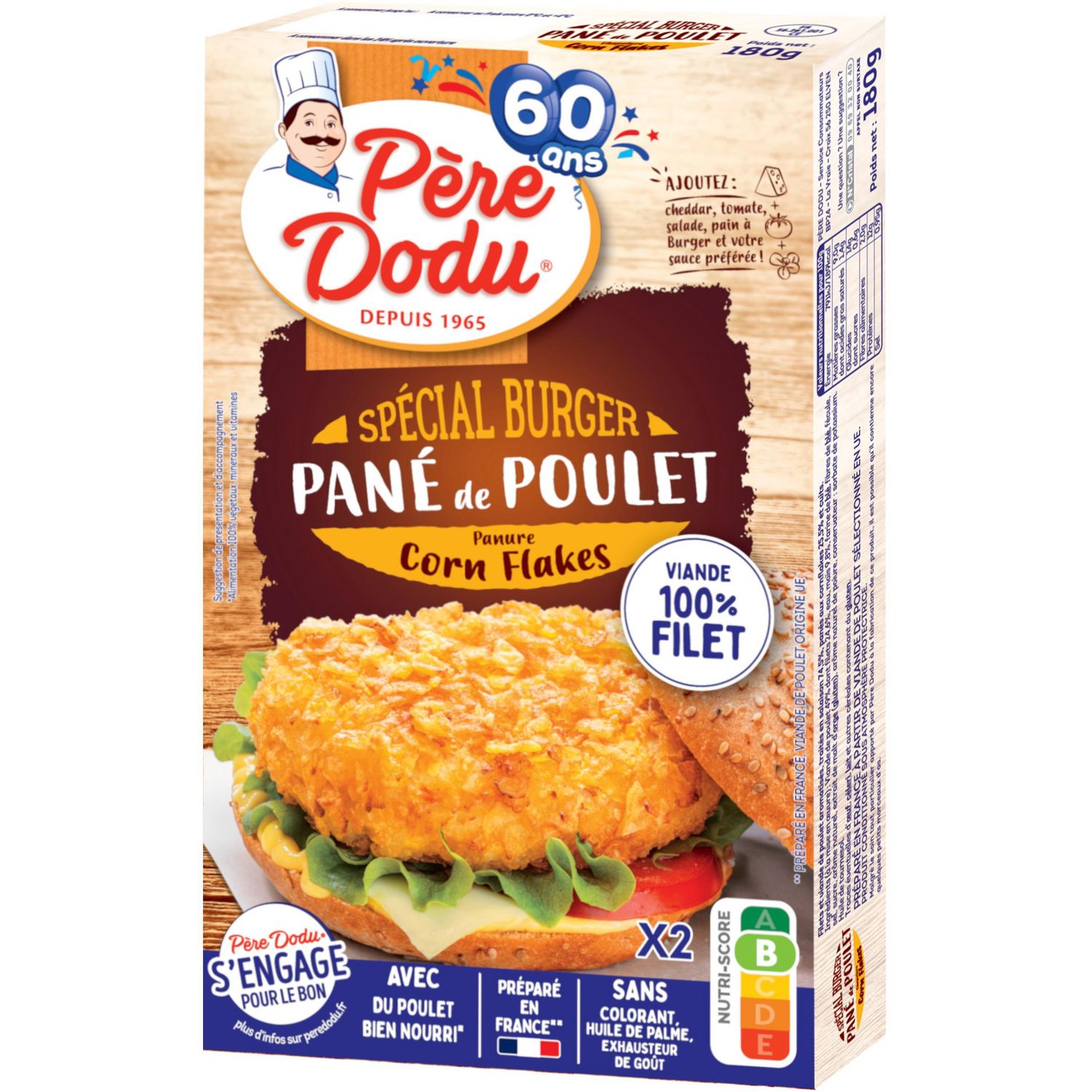 Sans colorant, huile de palme ni exhausteur de goût Nutri-score B Préparé en France à partir de viande origine UE
