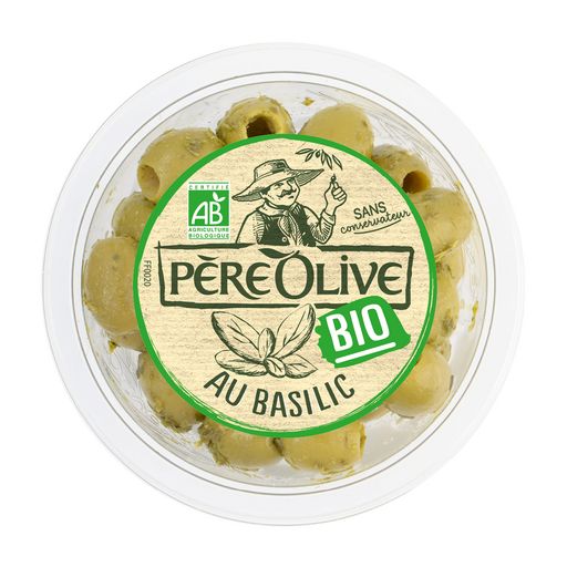 La fraicheur du basilic à l'olive verte charnue et bio.