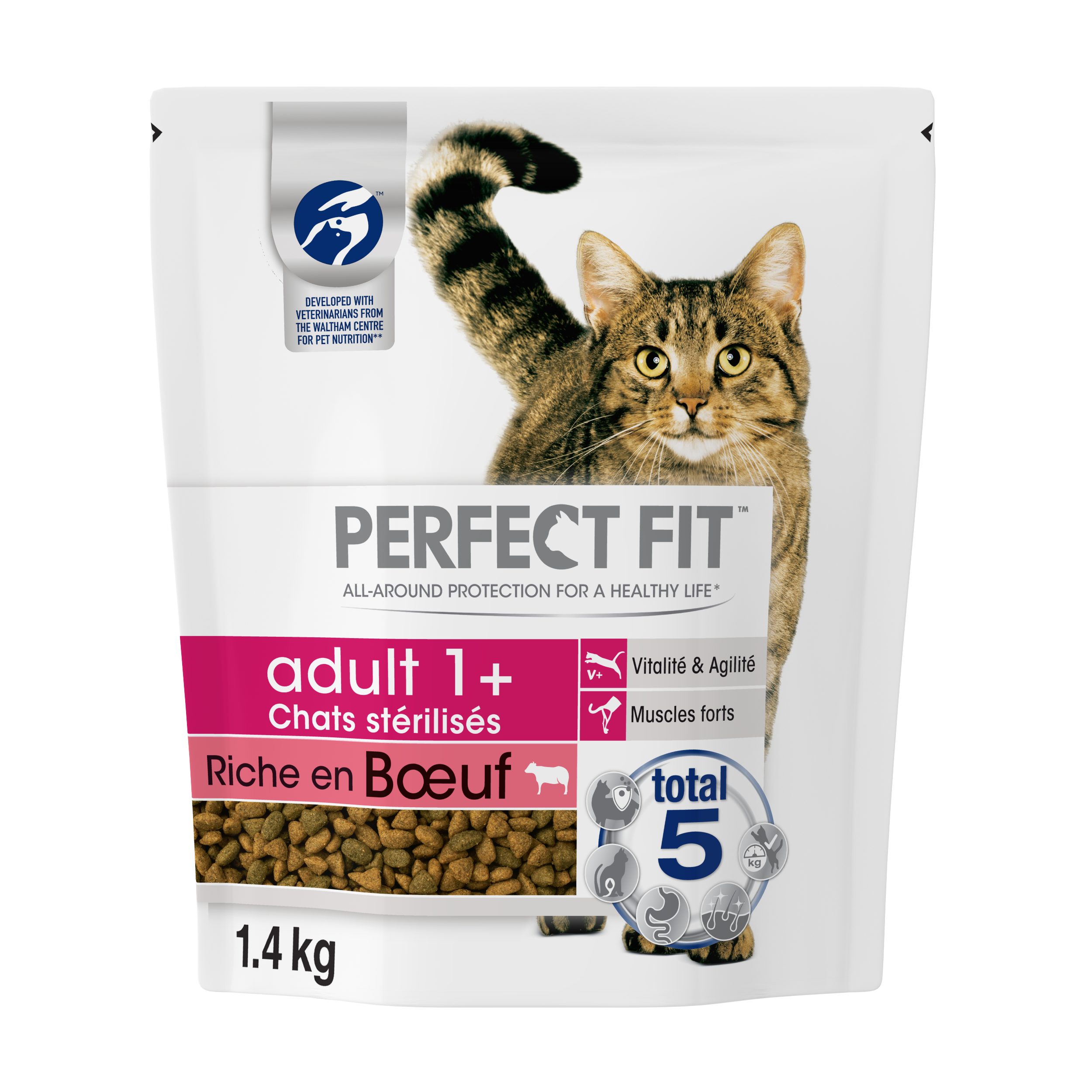 PERFECT FIT ADULT 1+ Croquettes Riche en Bœuf pour chat adulte stérilisé 1,4kg