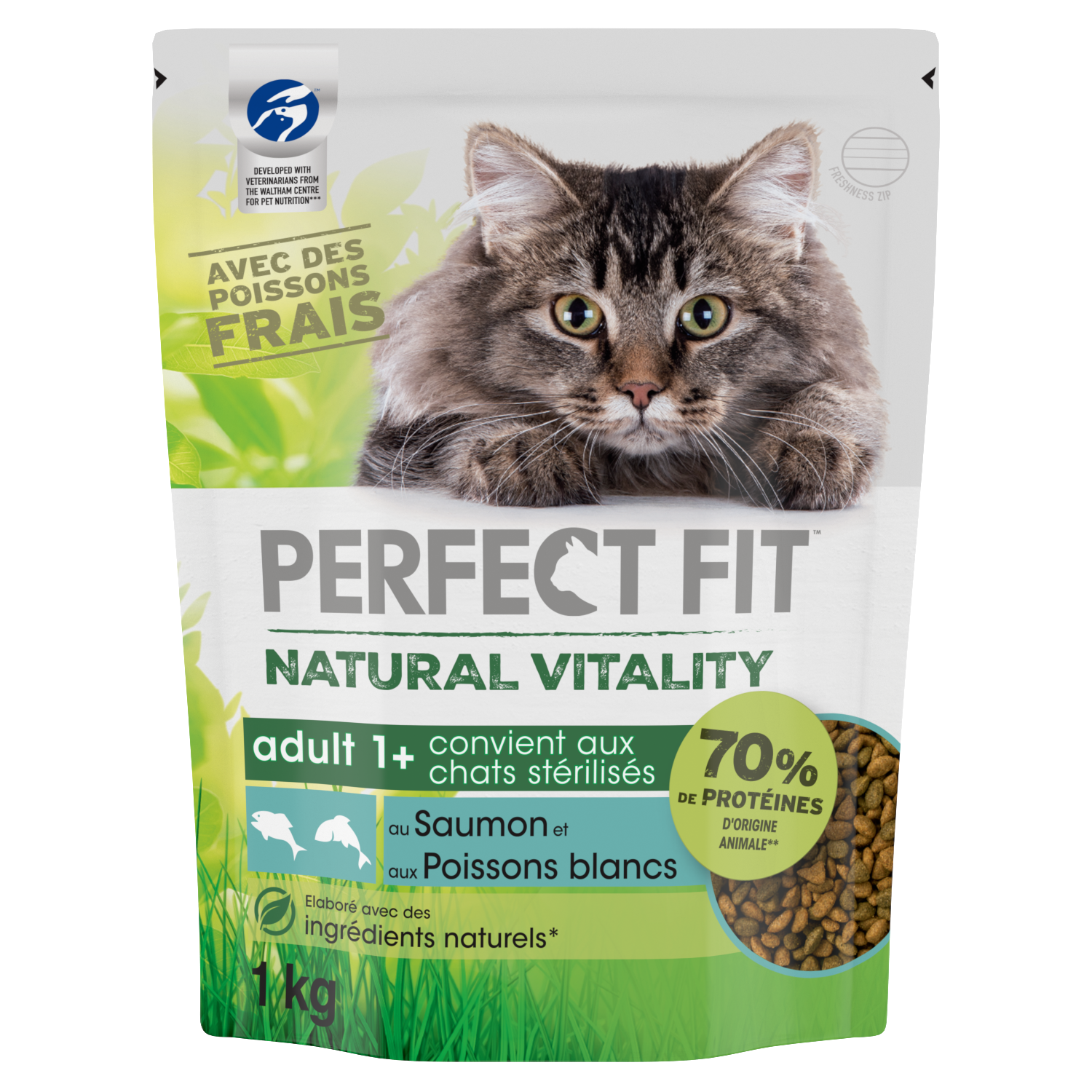 Les croquettes pour chats Perfect Fit™ Natural Vitality Adult 1+ sont disponibles en format 1 kg.