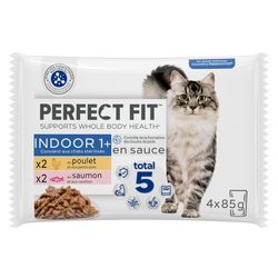 PERFECT FIT Indoor Stérilisé Sachets fraîcheur en sauce 2 variétés pour chat d'intérieur 4x85g