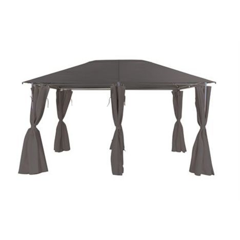 Cette tonnelle, au design élégant, vous permettra de vous protéger des intempéries, du soleil et des insectes. Ses dimensions généreuses, lui permettant de couvrir plus de 10m², sont idéales pour placer un salon de jardin en son centre. Fonctionnelle, elle est équipée de 4 rideaux en toile qui vous permettent de la fermer.
