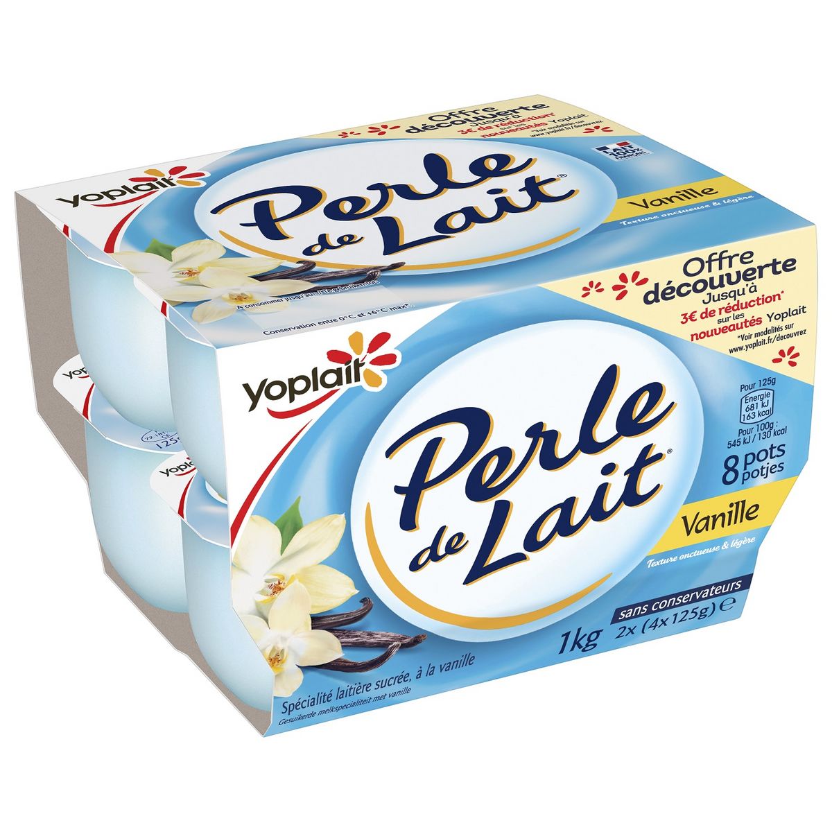 Le plaisir Perle de Lait, c'est une texture onctueuse et légère à la fois. Savourez toute la générosité de Perle de Lait Vanille avec du lait 100% Français.