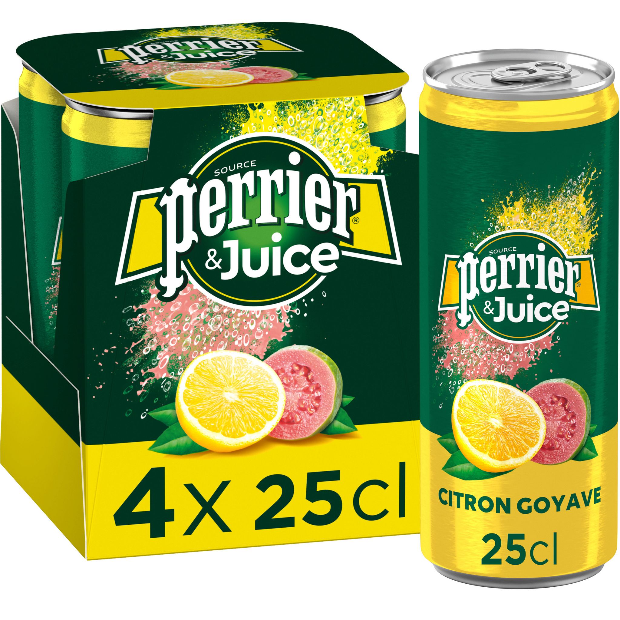 PERRIER & JUICE Citron & Goyave: la force des bulles de PERRIER alliée à de délicieux jus de fruits pour un rafraîchissement riche en goût et faible en calories. Osez le peps acidulé du citron combiné à la douceur de la goyave pour une pause plaisir sans culpabilité. Une boisson intensément rafraîchissante à déguster dès que l'envie s'en fait sentir ! PERRIER & JUICE est une boisson aromatisée à base de 3 jus de fruits à base de concentré.