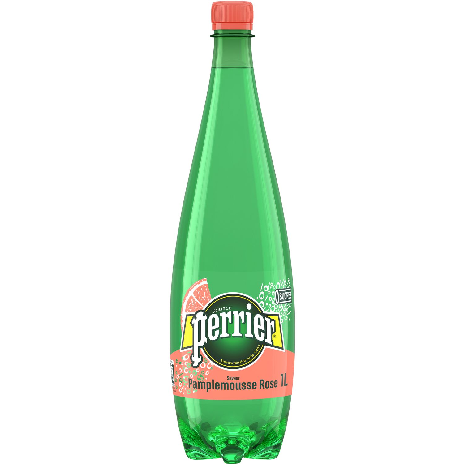 Envie de boire la vie en rose ? Laissez-vous séduire par la force des bulles de PERRIER Pamplemousse, l’eau minérale naturelle au goût subtil de pamplemousse et au puissant pouvoir désaltérant ! Dégustez-la en bouteille d’un litre pour un rafraîchissement pétillant en famille ou entre amis, quel que soit le moment de la journée ! Sans sucres et sans édulcorants cette boisson rafraîchira votre quotidien !