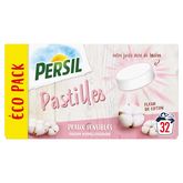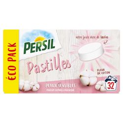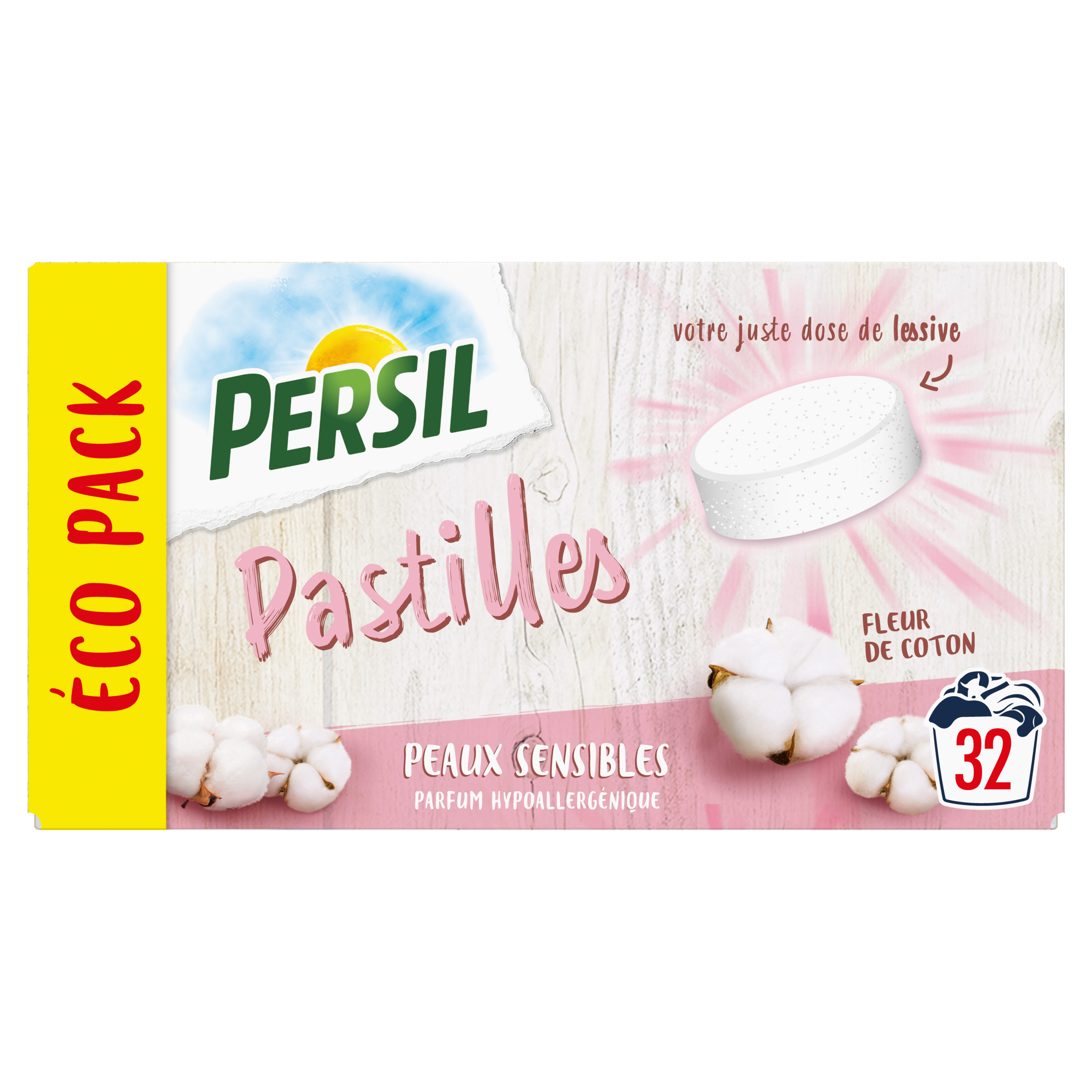 La Pastille Persil, c'est la dose de lessive pratique et à petit prix ! Les Pastilles Persil vous offre un soin complet dès 30° C pour un linge propre et frais, sans résidus sur le linge. Leur parfum Fleur de Coton est hypoallergénique* et leur formule est testée dermatologiquement pour respecter les peaux de toute la famille, même les plus sensibles ! Un format pratique pour bien doser dans une boîte en carton entièrement recyclable. Avec à son format pratique allant jusqu'à 32 lessives, dites adieu au surdosage ! Forte de son savoir-faire centenaire, la lessive Persil rend votre linge propre et frais. Les formats plus généreux et économiques des lessives Persil prennent également soin de votre porte-monnaie. Aujourd'hui, Persil s'adapte à l'ensemble de vos besoins tout en conservant son efficacité avec ses formats de lessives liquides, en pastilles et en poudre. Persil est engagé depuis de nombreuses années dans une démarche d'amélioration continue de son impact sur l'environnement. La marque adopte cette approche responsable à chaque étape du cycle de vie de ses produits, depuis le choix des matières premières, l'optimisation des processus de production et la réduction des emballages, jusqu'à l'utilisation finale par le consommateur. *Formulé pour minimiser les risques d'allergies.
