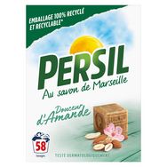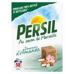 La lessive en poudre Persil parfum Douceur d'Amande 58 Lavages au savon de Marseille vous offre un soin complet pour un linge propre et frais.