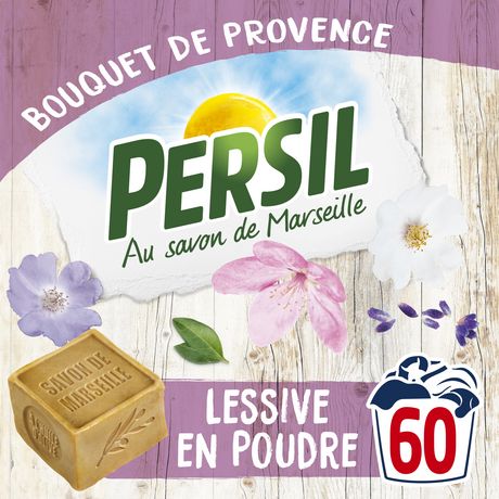 La lessive en poudre Persil Bouquet de Provence au savon de Marseille vous offre un soin complet pour un linge propre et frais.