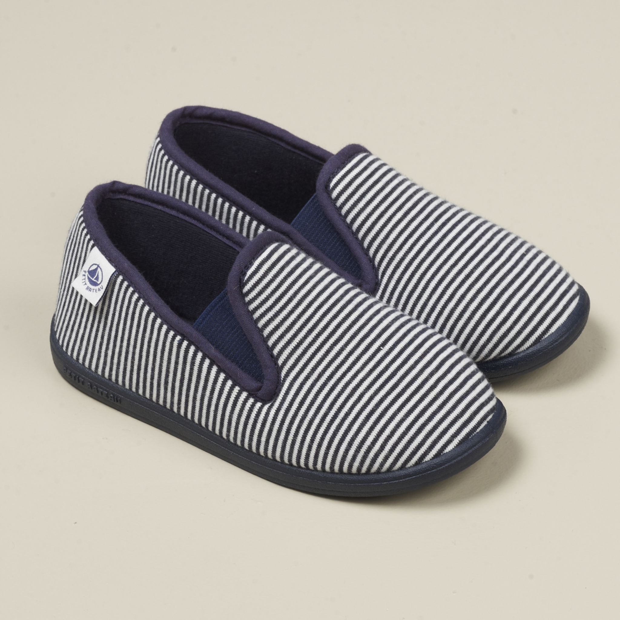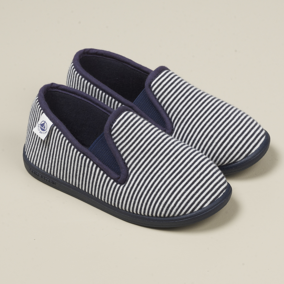 Les pieds de votre garçon seront bien tenus grâce à ces chaussons rayés Petit Bateau. Entièrement doublés en éponge. Le tissu souple et léger facilite les mouvements. Semelles isolantes et antidérapantes. Élastiques de chaque côté pour que votre enfant puisse les enfiler facilement.
