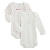 Des décors tendres et une grosse dose de douceur : on craque pour ce lot de 2 bodies bébé fille Petit Bateau. On aime la matière douce et confortable. Les bodies disposent d'emmanchures américaines et de manches longues. Ce lot de 2 bodies bébé fille Petit Bateau associe un body imprimé "coeurs" et un body avec motif sur le devant. 100% coton.