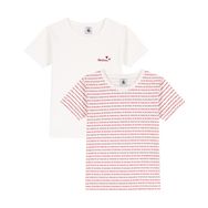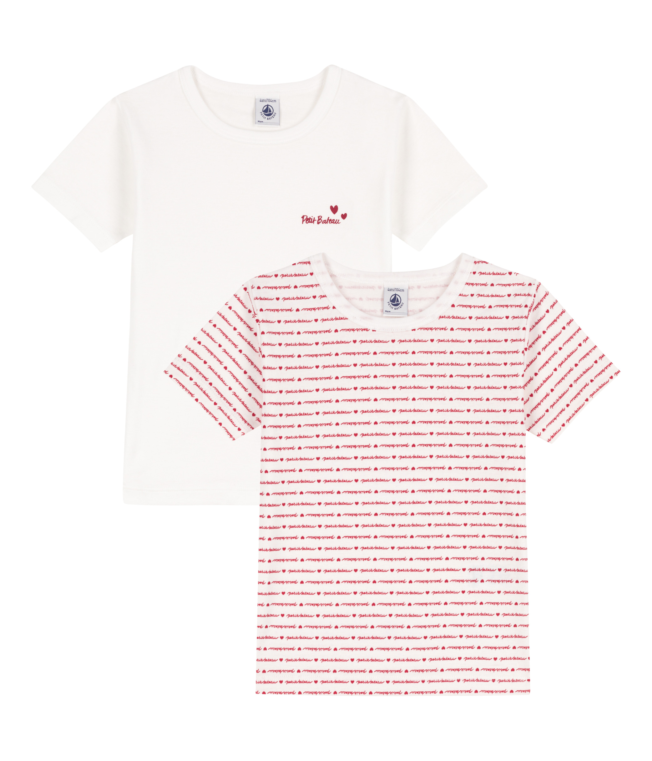 Petit bateau nous présente ce lot de 2 t-shirt manches courtes fille, idéal pour mettre en dessous d'un pull ou t-shirt manches longues. Il est imprimé de deux jolis cœurs rouge. Il est essentiellement composé de coton.