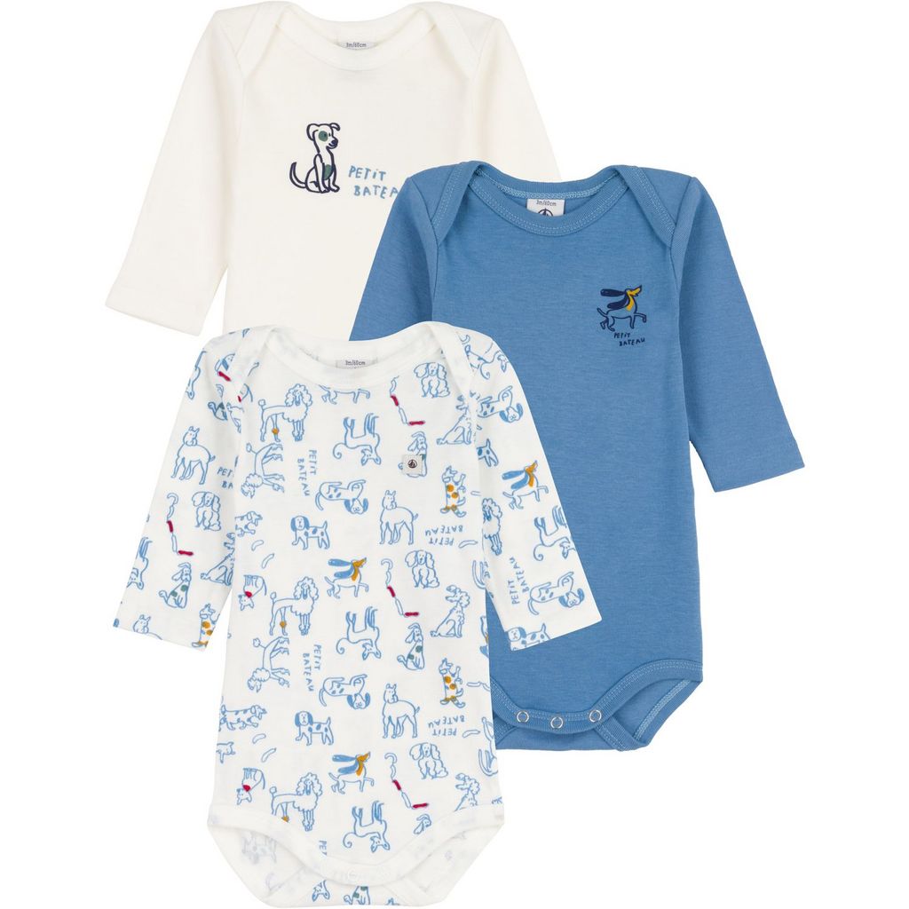 Lot de 3 bodies manches longues chiens bébé garçon