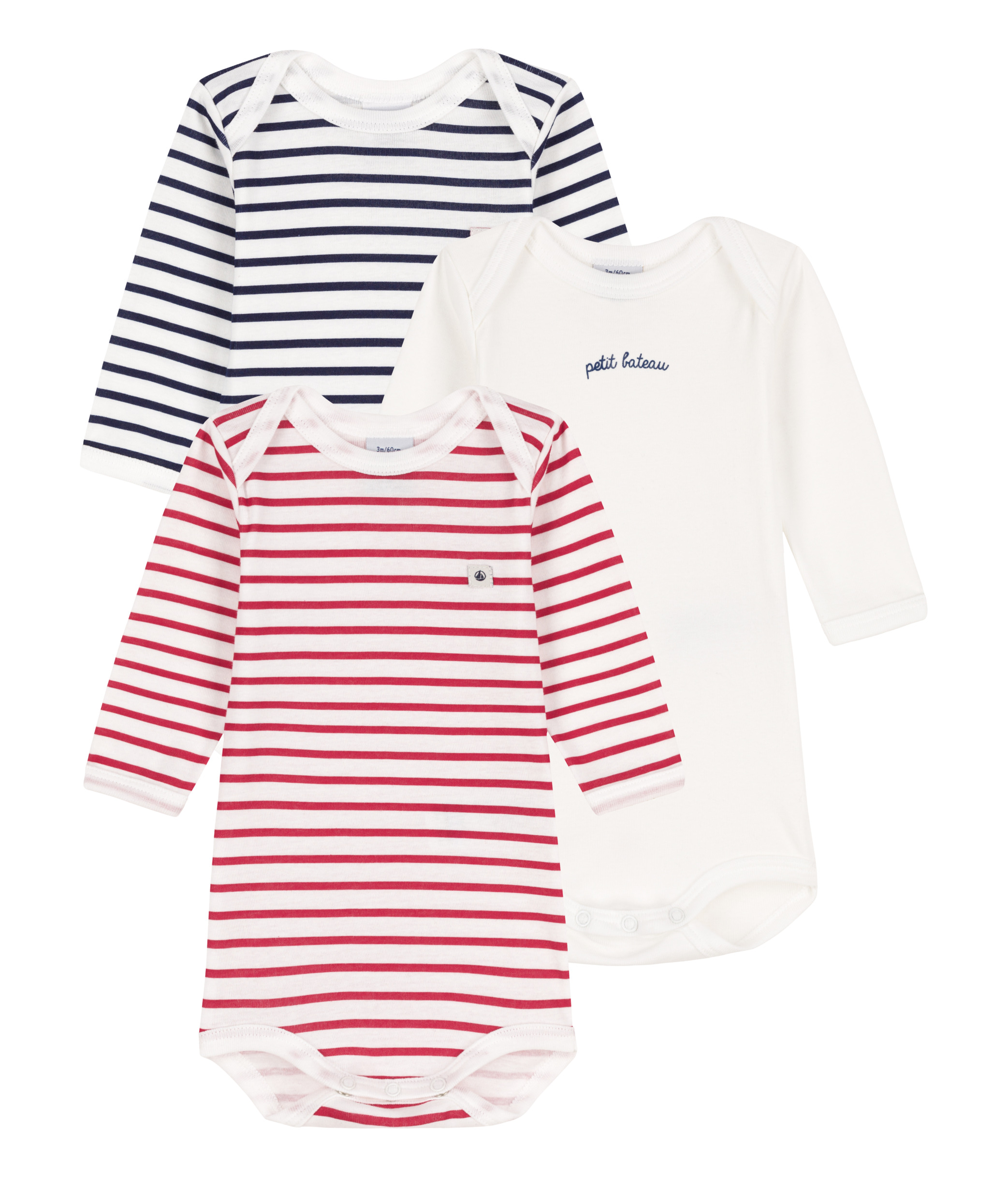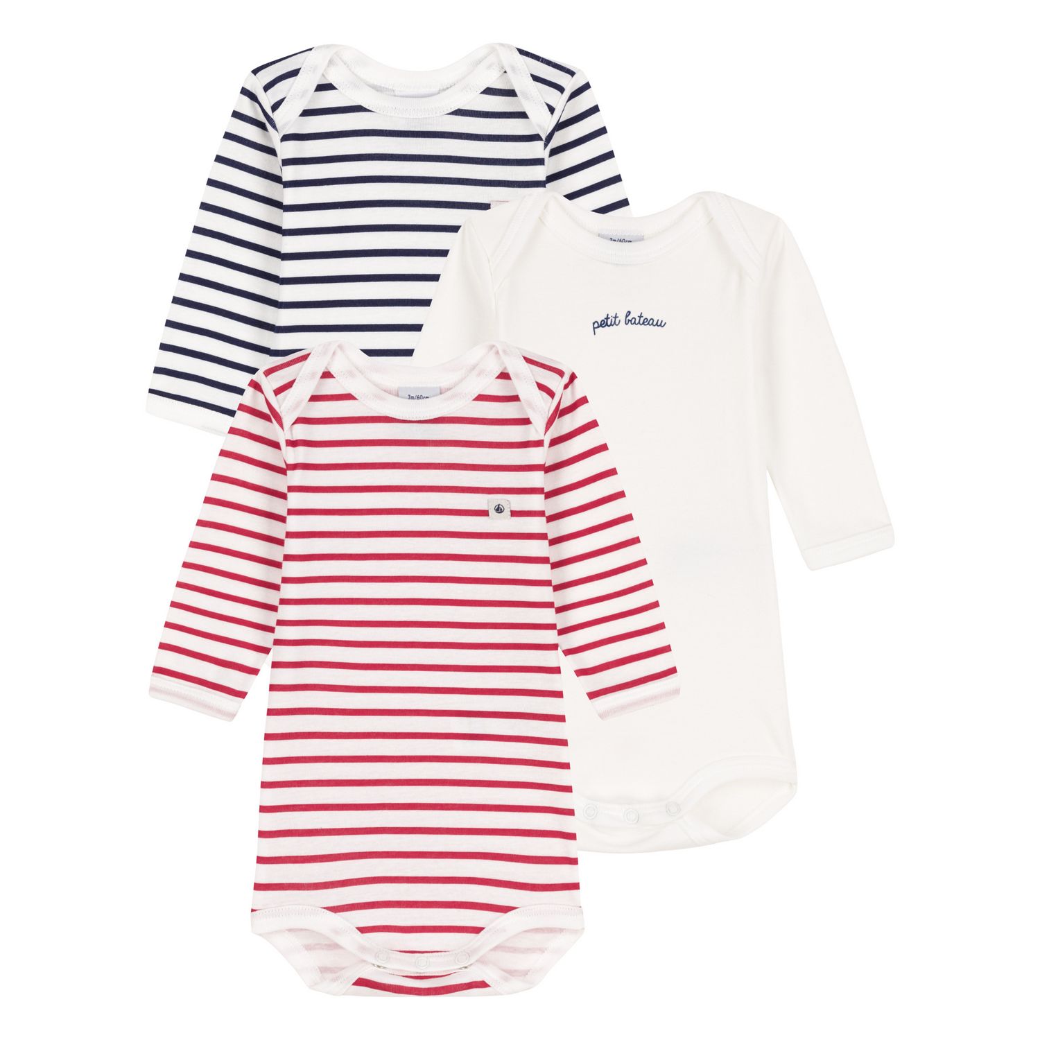 En savoir +Ce lot de 3 bodies PETIT BATEAU est parfait pour nos bébés. Ces bodies manches longues en coton épais affichent de beaux motifs mariniers, une encolure américaine pour un enfilage facile et une fermeture pressionnée à l’entrejambe.