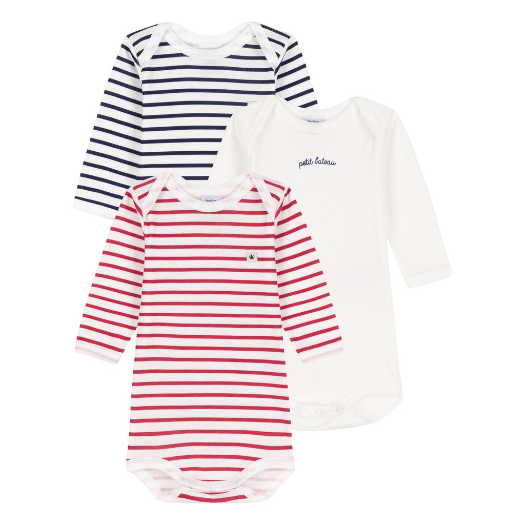 Ce lot de 3 bodies PETIT BATEAU est parfait pour nos bébés. Ces bodies manches longues en coton épais affichent de beaux motifs mariniers, une encolure américaine pour un enfilage facile et une fermeture pressionnée à l’entrejambe.