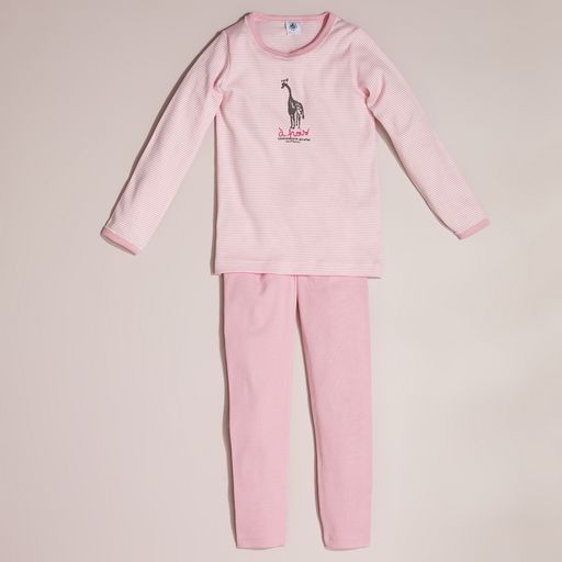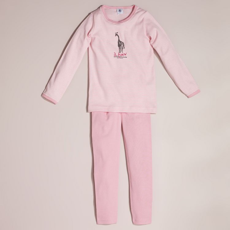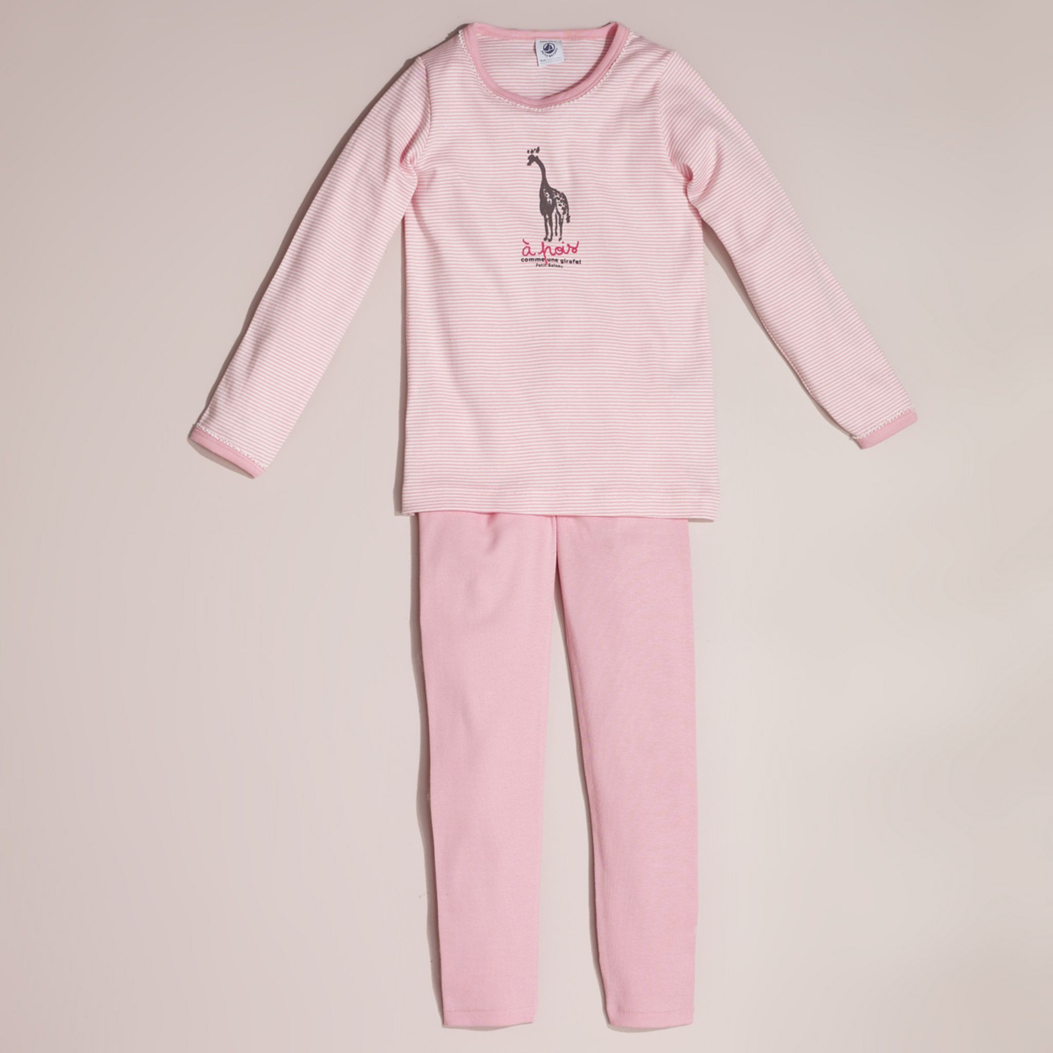 Souplesse et confort sont les secrets de ce pyjama fille Petit Bateau. Maille en pur coton, douce au toucher. Haut : finement rayé, col rond et manches longues. Bords-côtes unis au col et aux poignets rehaussés d'une finition fantaisie féminine. Motif et inscription placés sur le devant. Pantal