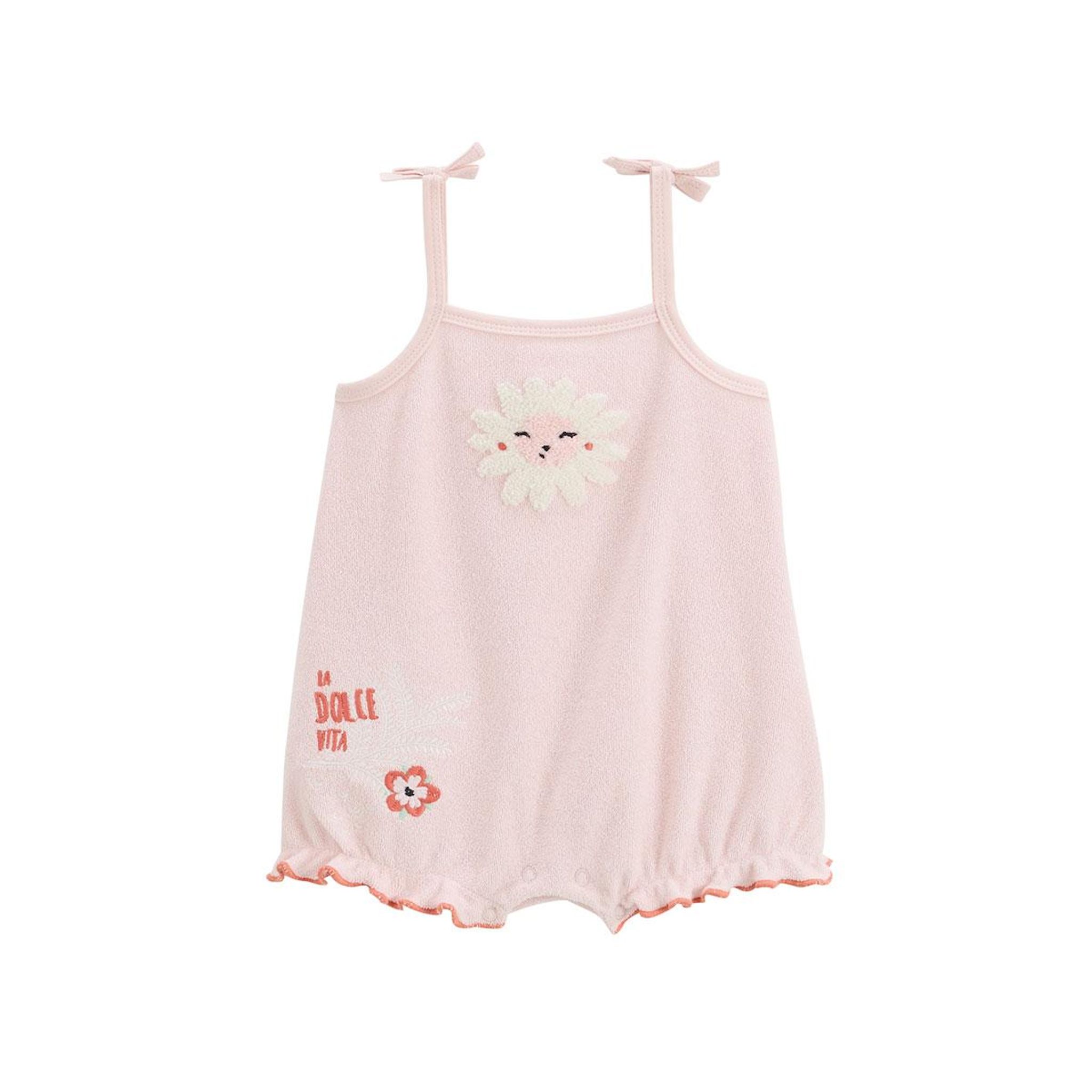 Idéale pour l'été, cette barboteuse à bretelles offre une tenue légère et confortable. Sa matière en éponge douce est parfaite après la baignade, tandis que sa coupe mignonne permet de bouger librement. Un indispensable pour les journées chaudes. Une ouverture pressionnée à l'entrejambe Tout en épon