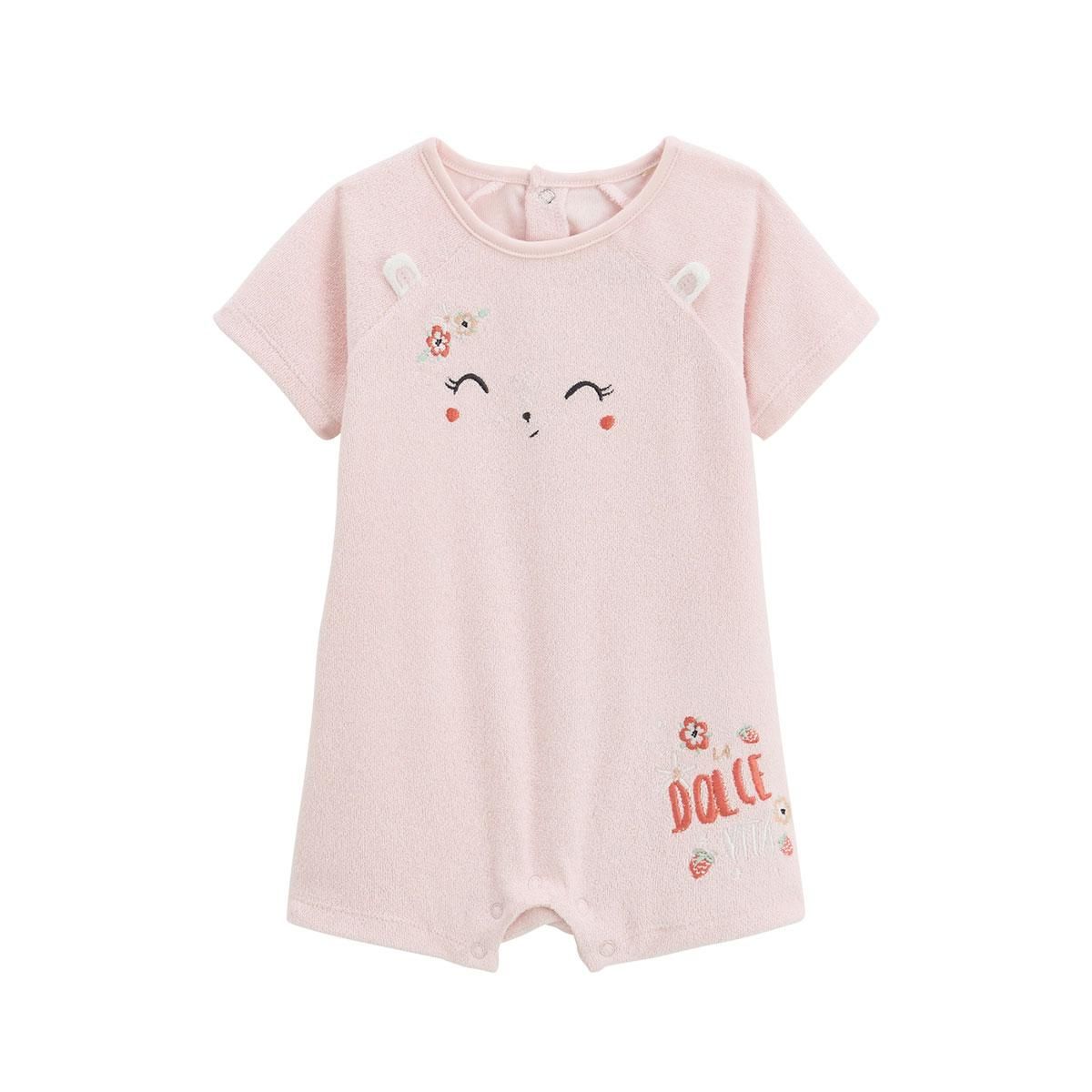Une barboteuse légère et confortable, parfaite pour les journées d'été. Sa matière en éponge douce est agréable à porter après la baignade comme par temps chaud. Manches courtes, broderies, petites oreilles, tout ces détails pour un look craquant. Une ouverture pressionnée à l'entrejambe Tout en épo