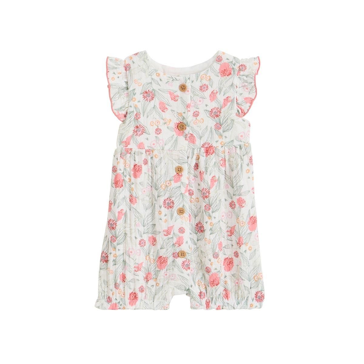 Avec son imprimé fleuri et sa coupe sans manches, cette barboteuse est parfaite pour les journées douces. Légère et agréable à porter, elle est aussi pratique que jolie, avec une touche délicate grâce aux volants sur les épaules. En gaze de coton, matière légère et confortable Jolis volants sur les