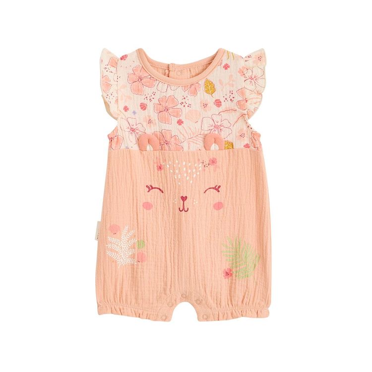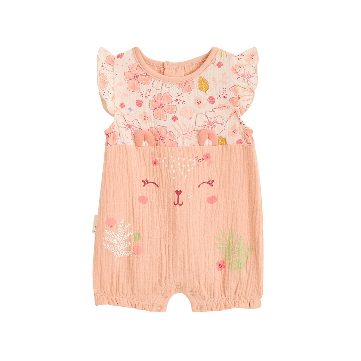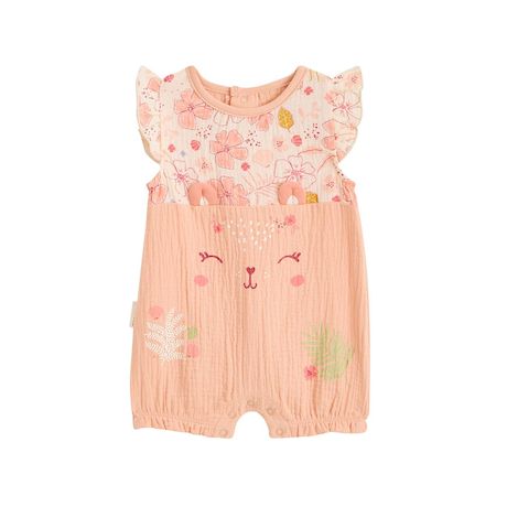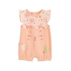 Cette barboteuse est parfaite pour les journées ensoleillées. Facile à enfiler et agréable à porter, on craque pour ses volants trop mignons et son imprimé fleuri plein de charme. Produit labellisé STANDARD 100 by OEKO-TEX ® (BJ020 189402 TESTEX) En gaze de coton, matière légère et confortable Une o